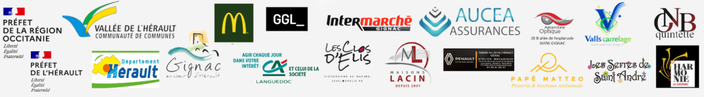 L’équipe du Or Notes Festival remercie le préfet de région Occitanie, le préfet de l’Hérault, le conseil départemental de l’Hérault, la mairie de Gignac et l’école de musique de la Vallée de l’Hérault qui apportent un soutien sans faille ainsi que ses partenaires privés : Mac Donald’s de Gignac, GGL, Présence Verte, le Crédit Agricole Languedoc Roussillon, le garage Renault de la Vallée de l’Hérault, Le Clos d’Elis, Aucéa Assurances, Intermaché Gignac, Papé Matéo, Les serres de Saint André de Sangonis, NPP, le domaine de Pélican et l’Harmonie de Gignac.